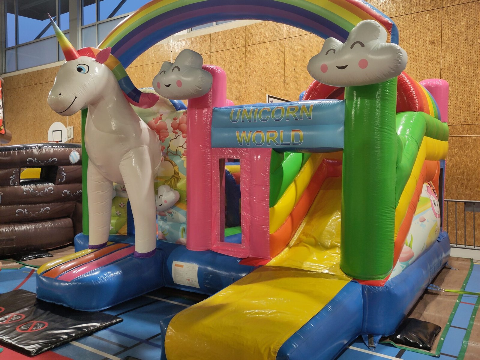 La Licorne est une grande structure gonflable (5 × 5,5 × 4 m) idéale pour les enfants de 3 à 7 ans, jusqu’à 12 participants, pour un moment magique et coloré.